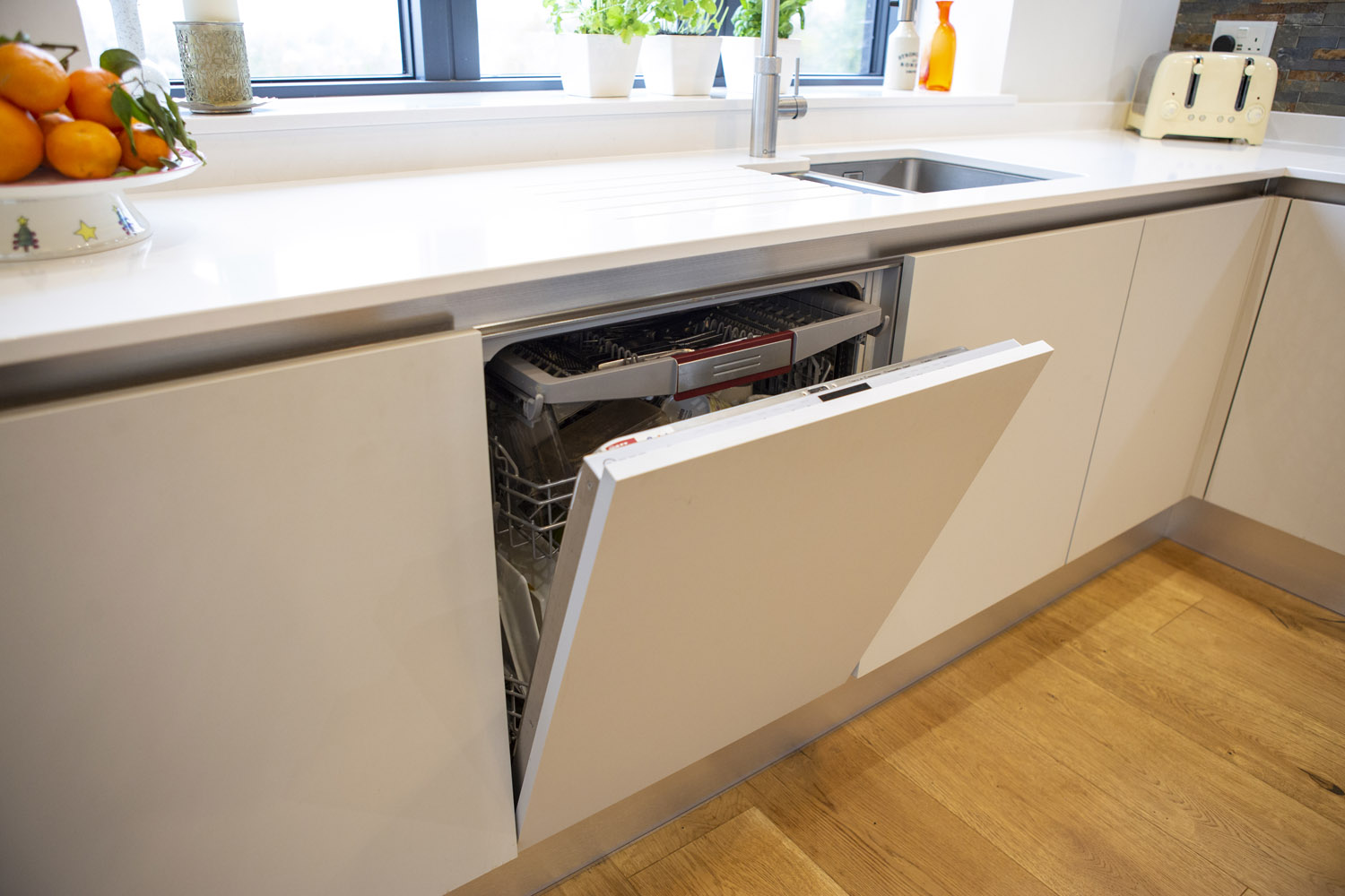 As an avid cook, Jane’s favourite feature must be the combi oven and microwave which she uses more than the main oven which sits adjacent to it. She also proudly shows off the kitchen cabinet next to it brimming with her collection of cookbooks. Wayne’s favourite feature is his coffee machine which sits neatly next to the main oven. Overall, Wayne says he’s over the moon with the whole kitchen and absolutely loves it and for Jane, she says that that is her overall favourite part too, the fact that they both love it.