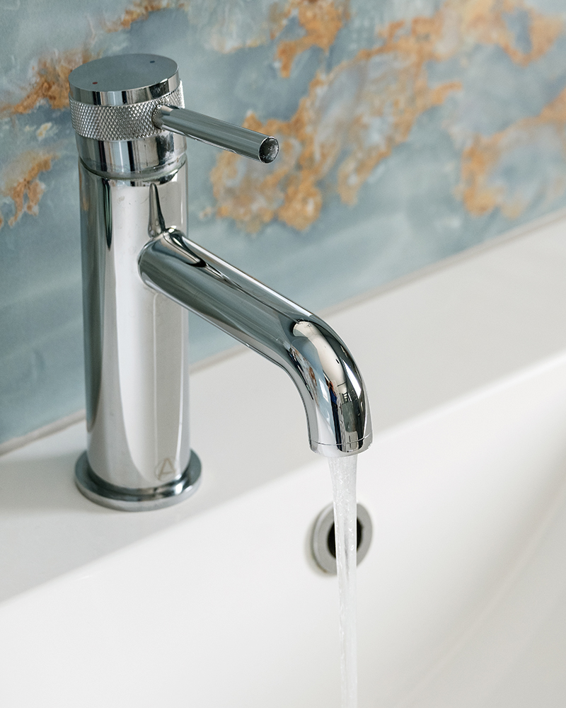 One of Natalie’s ‘must-haves’ was a beautiful feature bath in the family bathroom, where she could enjoy a relaxing soak. Although she was thinking of choosing a freestanding model, the idea of dust gathering behind was a worry. Researching online she found a style with a lip that fits snugly into a corner, solving the problem. Olga tuned in to Natalie’s concerns and when it came to choosing the right bath filler, she stepped in,