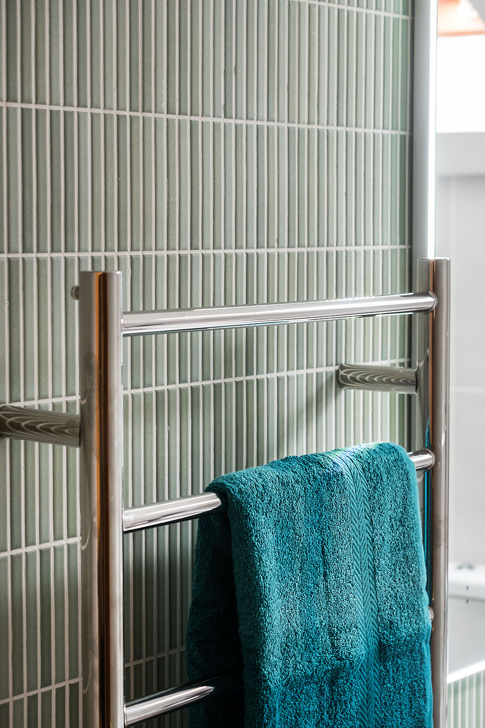 Billie had initially expected to keep the existing radiators, but Daisy introduced the idea of heated towel rails. These have since become one of Billie’s favourite features,