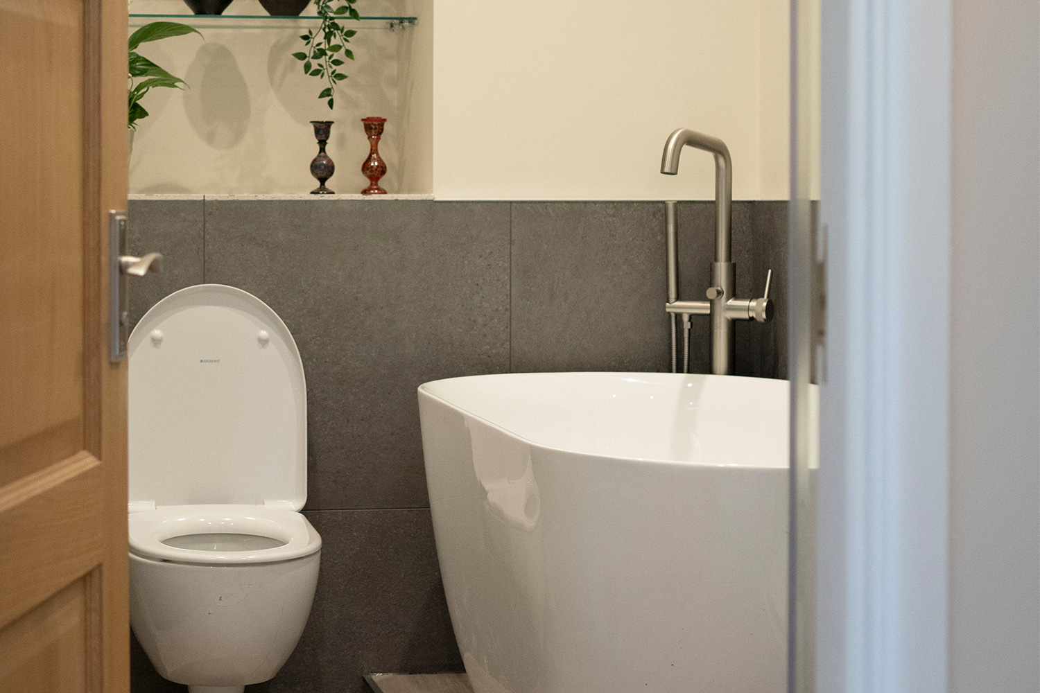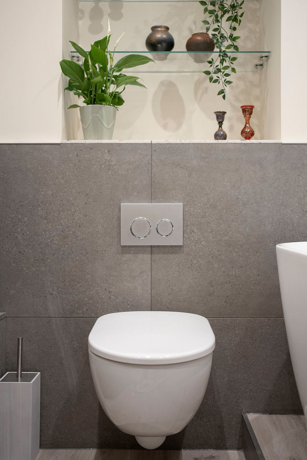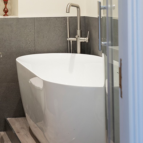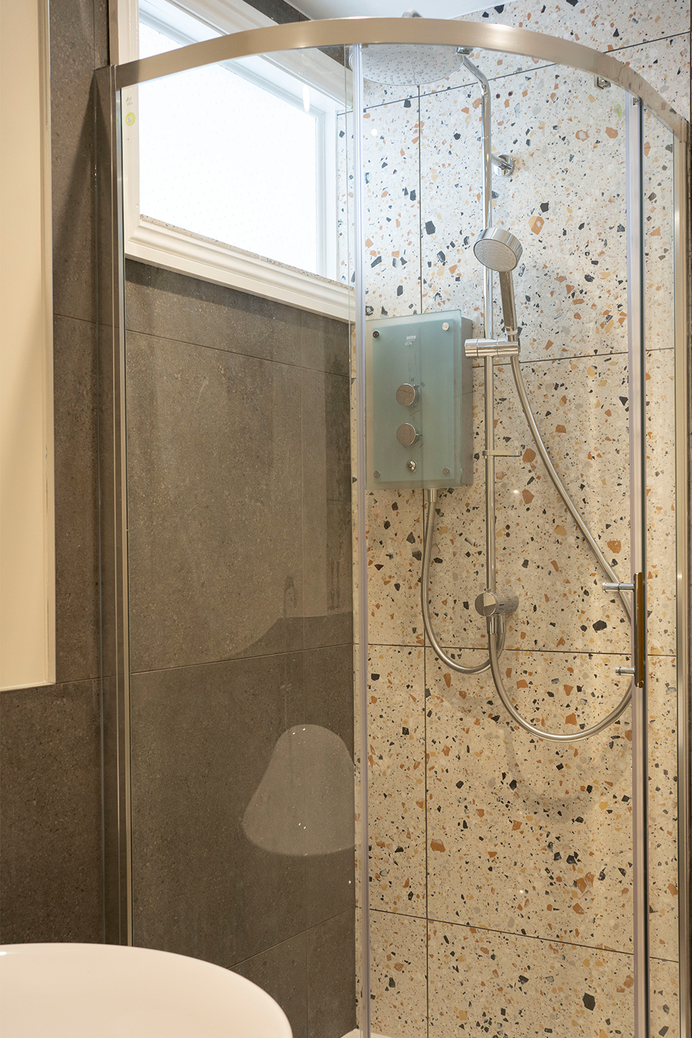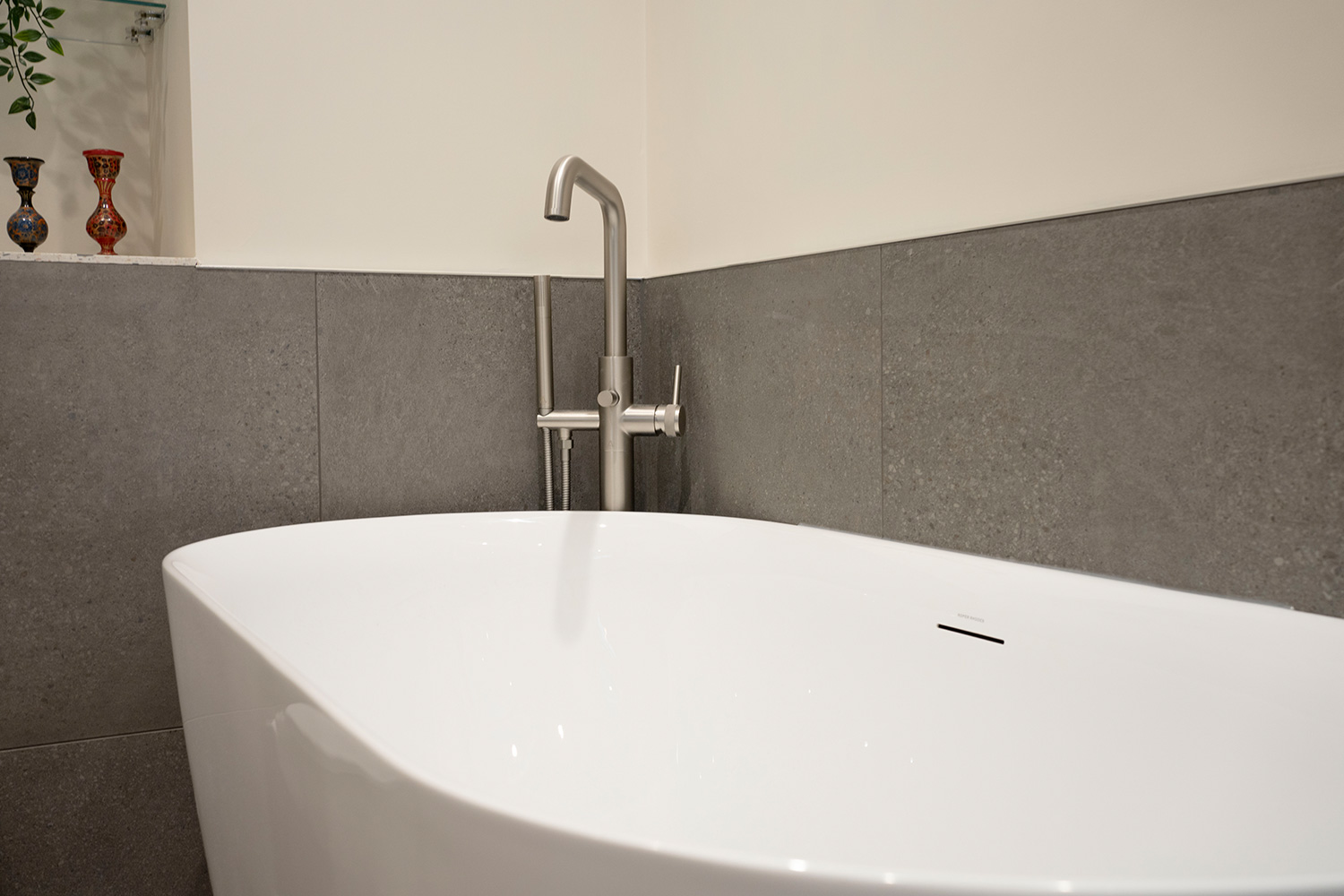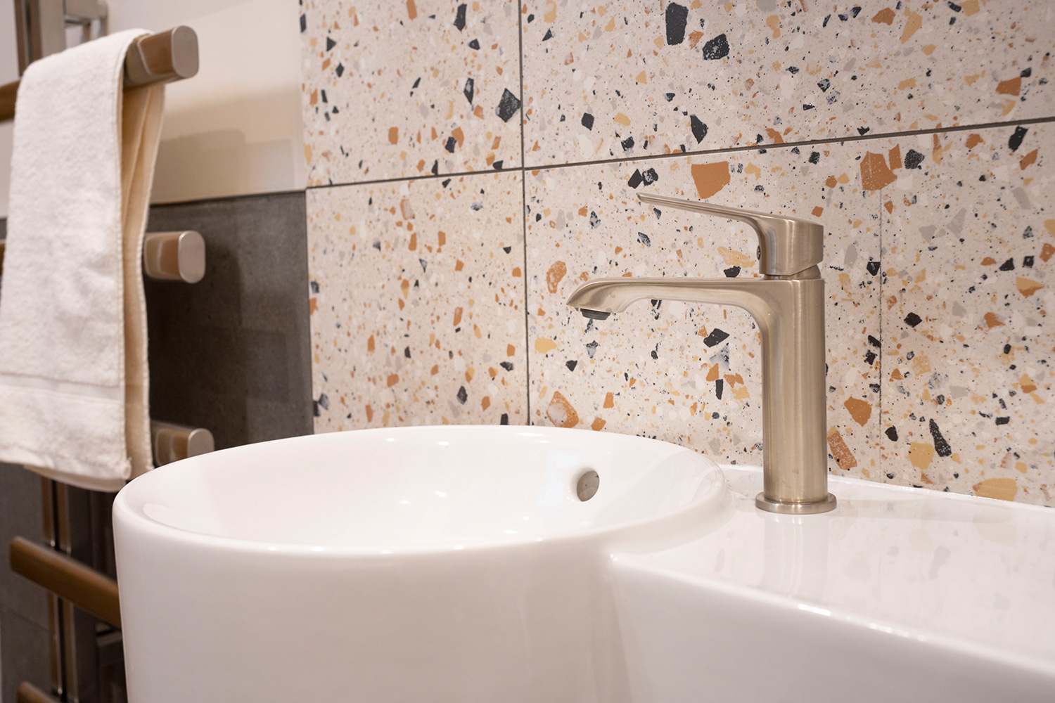 Before her visit, Ruth had already decided she wanted a free-standing bath for a luxury feel to the space with a separate shower to keep it practical for her visiting guests. Daisy opted for a Roper Rhodes Note free-standing bath in the design, complimented by brushed nickel brassware to enhance the premium look of the bath. The use of brushed nickel was also extended to the basin mixer tap and towel rail, creating a cohesive design.